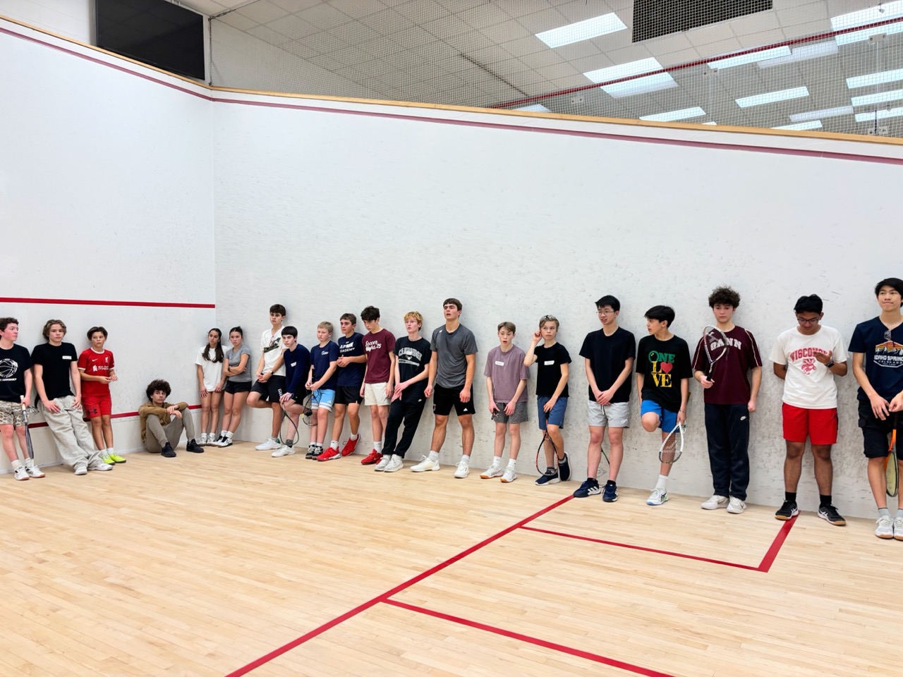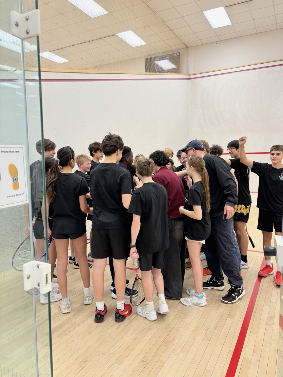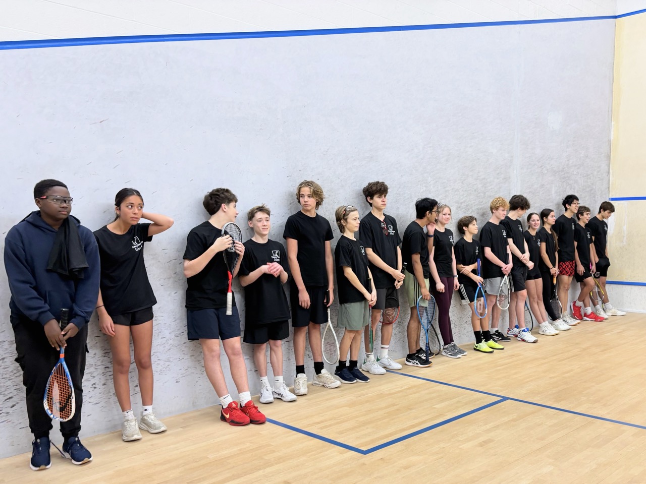 In our second year, 2025-26, CRLS split from Arlington to form its own public school squash team. 35 students attended our Open Houses and 31 returned for tryouts! Originally we were only planning to accept 16 students, but thanks to the generous funding we received from CRLS Clubs, we were able to secure additional court time at Harvard Murr so we could expand our program to 26. We are grateful for the overwhelming support we have received from our school, as well as the local squash community.