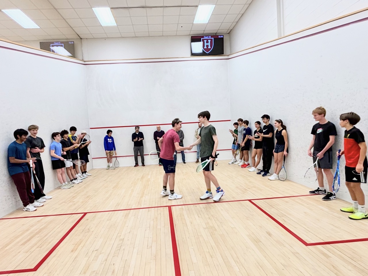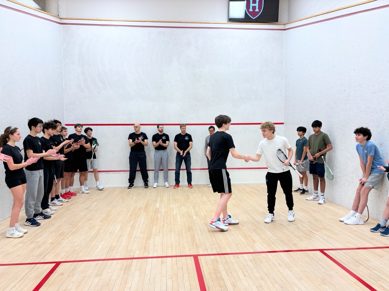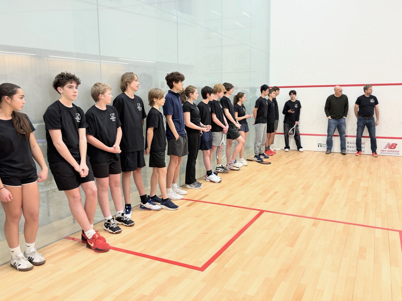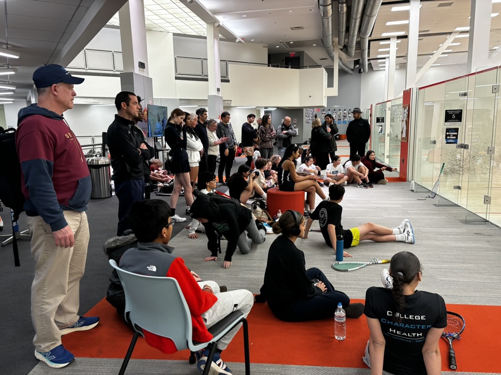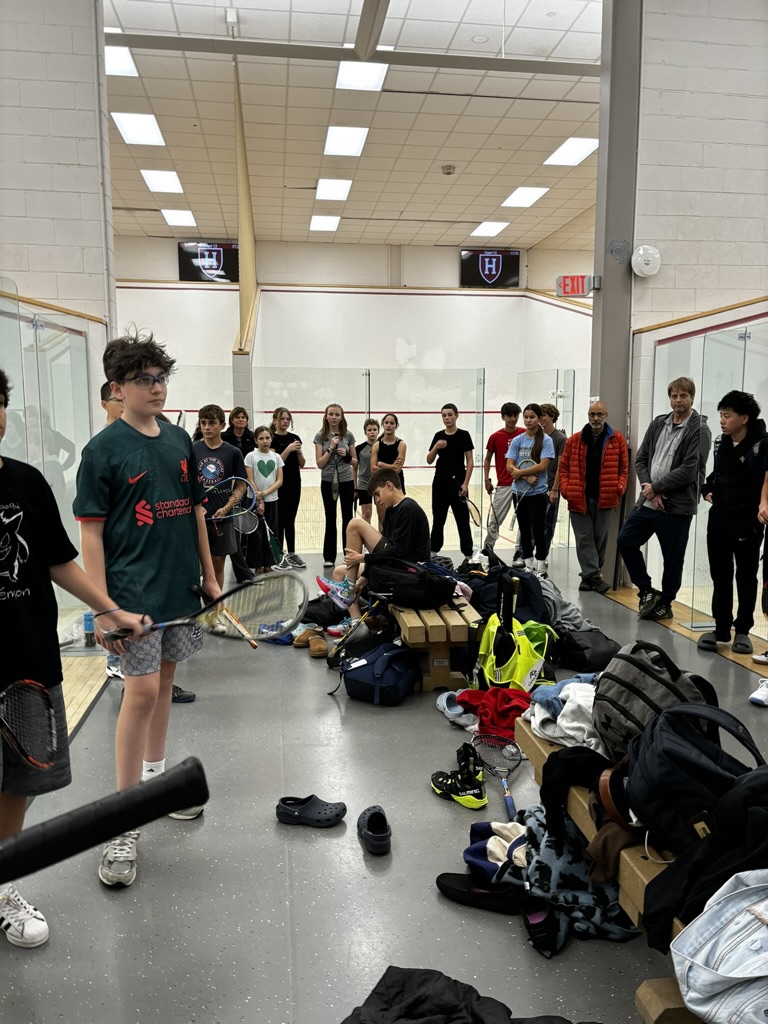 11/22: We held 3 Squash Open Houses, and it became pretty clear that this sport sells itself! Once kids got on court they came back – participation grew from 18 kids at Open House #1, to 30 at #2, to 36 kids at #3. The courts were packed – the Harvard coaches were pretty impressed with our energy and enthusiasm!
