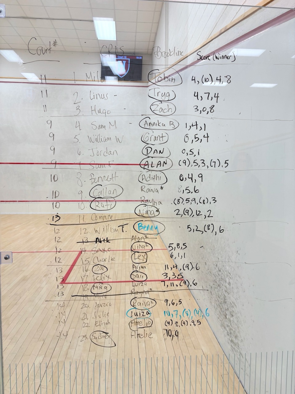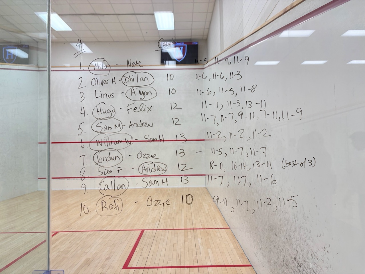 We started playing official “Challenge Matches” to establish our squash ladder. Lots of close matches and good competition among our beginners!