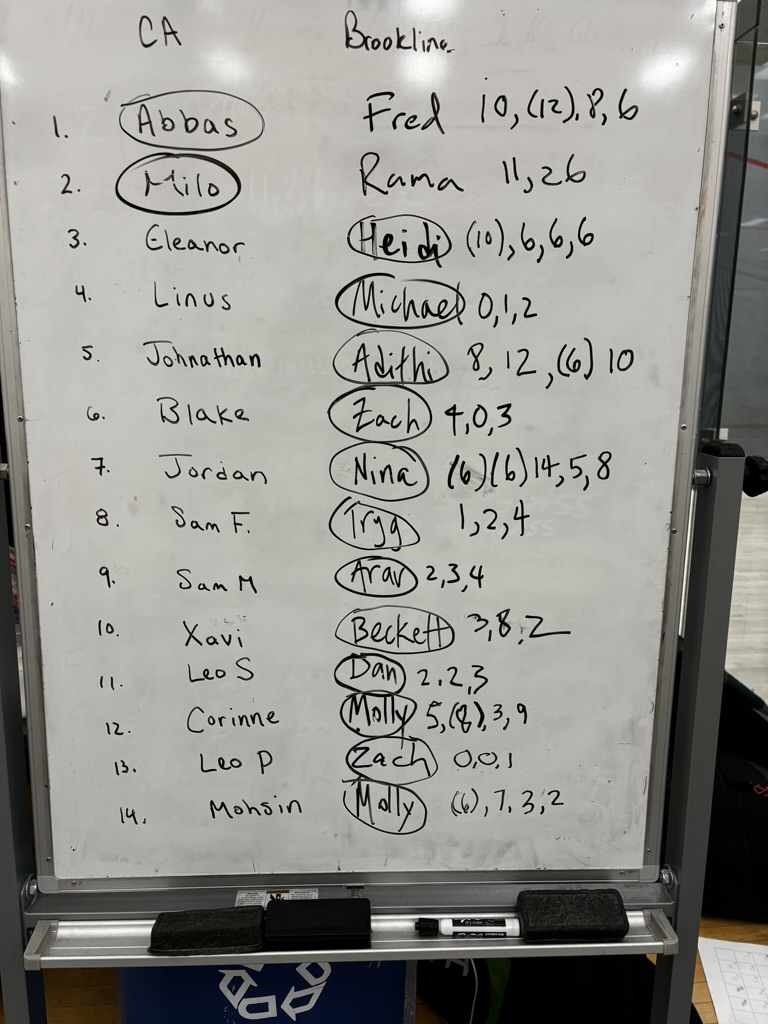 We competed against: Arlington HS, Wellesley HS, Brookline HS, Beaver Country Day School, SquashWest Acton, SquashBusters Boston, SquashBusters Lawrence, SquashBusters Providence.