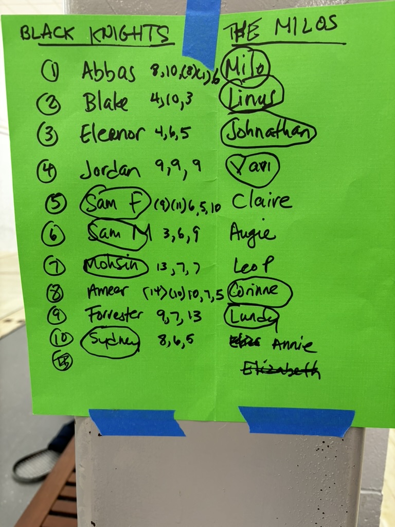2/14: For our grand Valentine’s Day finale, we split into two teams and played an “in-house” tournament. All players participated, and we included a few middle schoolers too. This was followed by a pizza/pickleball party and a truly memorable squash ball cake!