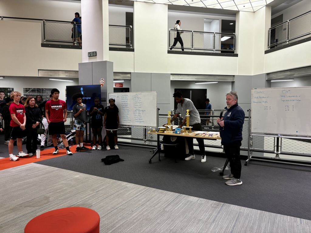 CRLS Squash is an official school club sport. In September, a few of our players fielded a table at “Club Week,” where they presented basic club information and collected signatures from interested students.